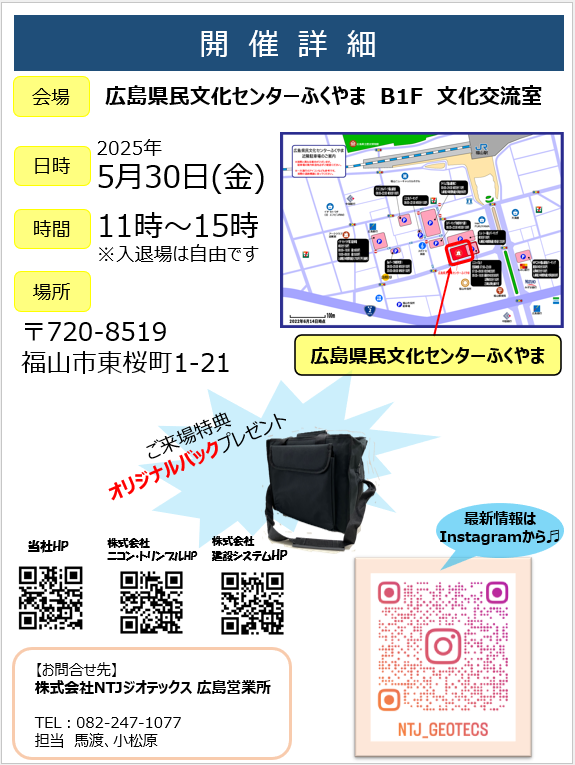 省力化・人減化・データ共有にご関心のある方、測量機器/測量ソフトの展示・体験が可能です。